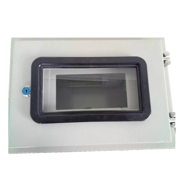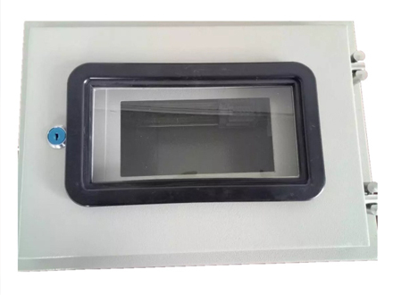 2、箱体分上箱体、下箱体(为斜面式吻合,吻合面上下端部箱体为弧型)。上下箱体用不锈钢合叶连接,由橡塑条密封,下端安装不锈钢吊扣以压紧。前开门带观察窗,有倾斜式防雨顶盖,门与箱体之间采用防溅结构,能防雨防尘,适与室内外安装;